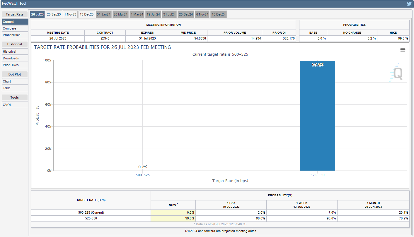 在此之前,预计7月26日的FOMC利率决议可能对英镑/美元产生影响。市场普遍预计美联储将加息25个基点,然而,随着美联储的加息周期看似即将结束,市场参与者可能会更为关注货币政策的前瞻性指引。